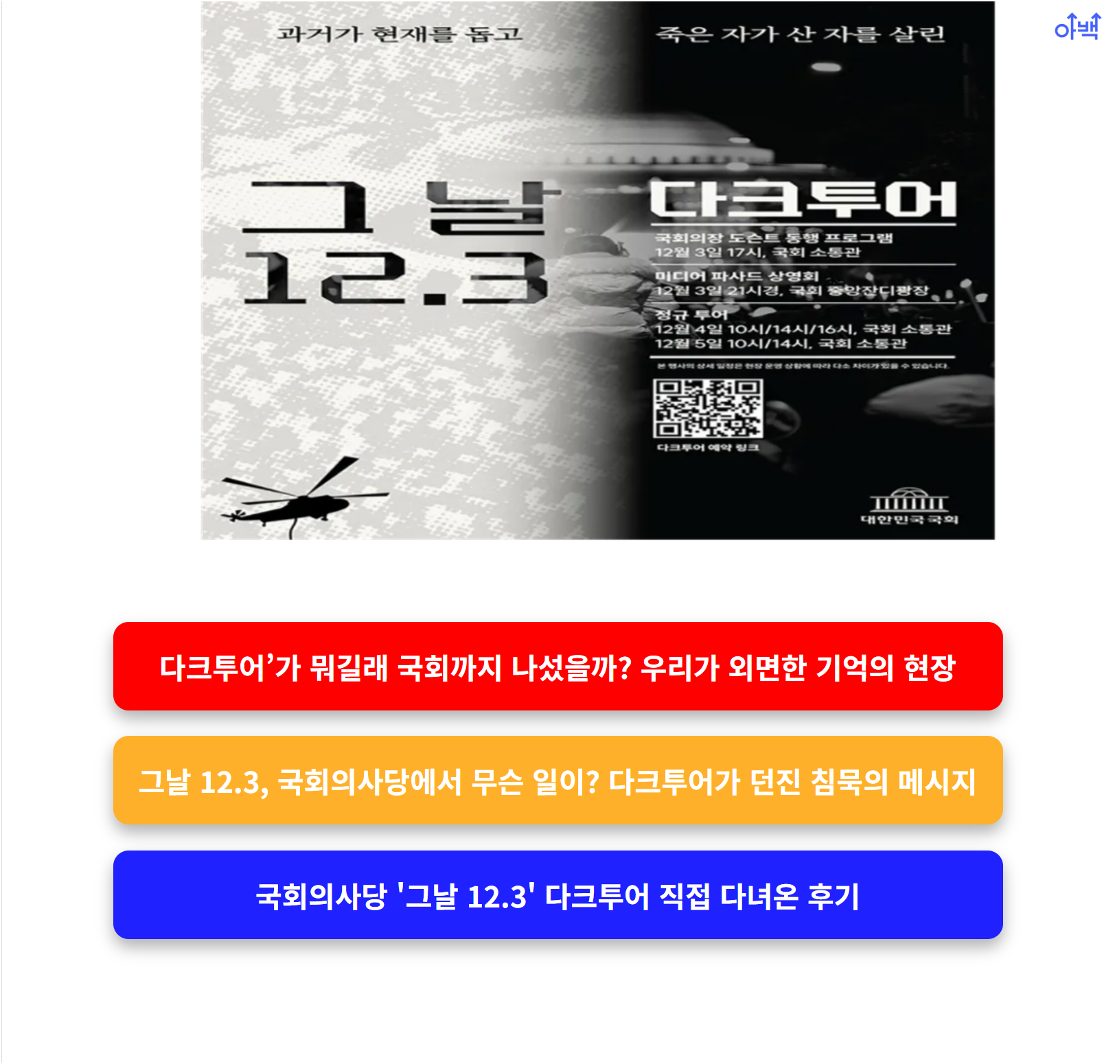 지금부터 ‘그날 12.3 다크투어’의 핵심 내용을 정리해 드립니다. 이 행사를 단순히 지나치지 않길 바랍니다.