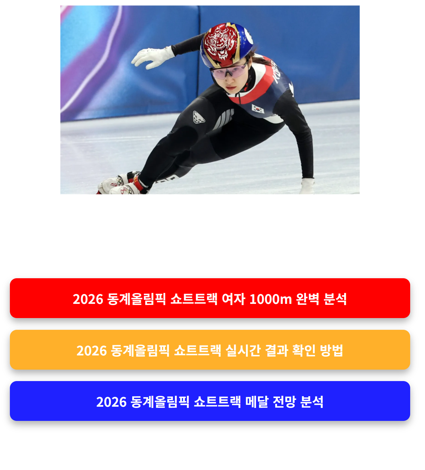2026 동계올림픽 쇼트트랙 여자 1000m는 메달이 걸린 중요한 경기입니다. 대한민국 대표팀의 전략과 집중력이 승부를 가를 것입니다.